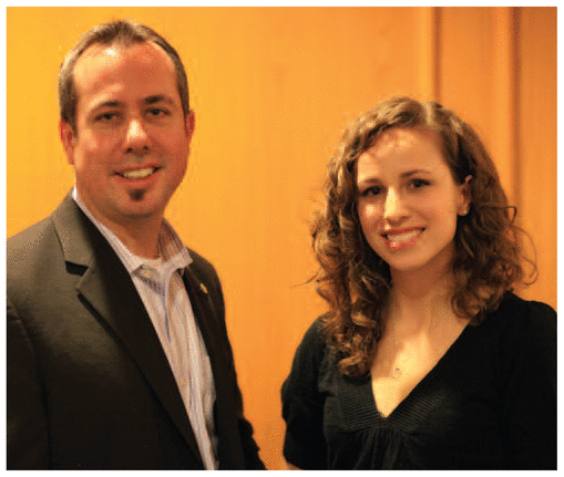 Sarah Hasenbank (right), recipient of the CSHP/CAPSI Hospital Pharmacy Student Award, with CSHP Past President Neil MacKinnon (left). |