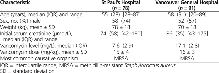 This retrospective, multicentre study was conducted at St Paul’s Hospital and Vancouver General Hospital. Both are tertiary care teaching hospitals located in an urban setting. St Paul’s Hospital serves an inner-city patient population, including a large cohort of injection drug users. Vancouver General Hospital cares for a diverse patient population and provides some additional specialty services for trauma and burns.