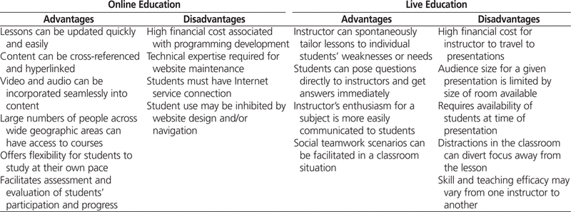 Advantages and Disadvantages of Online and Live Modes of Education1,6