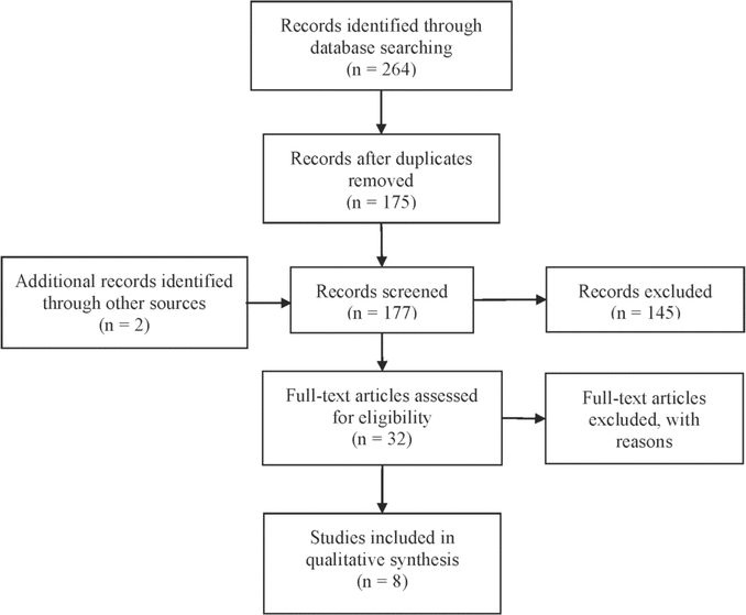 A total of 175 unique records were identified, of which 145 were excluded at the abstract review stage (Figure 1). Two studies identified through manual searching of other articles’ reference lists were included for full-text review. In total, 32 full-text articles were reviewed, 24 of which were subsequently excluded. Therefore, a total of 8 studies were included for evidence synthesis: 6 prospective before-and-after studies, 1 time flow study, and 1 randomized controlled trial (RCT). Characteristics of the included studies are summarized in Table 1.7–14 ADDs had been implemented in ICUs, general medicine wards, surgical units, or a combination of these locations within the study hospitals. All studies were conducted in the United States, except for one study that was performed in France. The duration of the studies ranged from 14 days to 9 months, and all were published between 1992 and 2010.