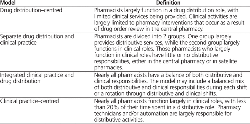 Definitions of Pharmacy Practice Models in the 2011/2012 Hospital Pharmacy in Canada Survey