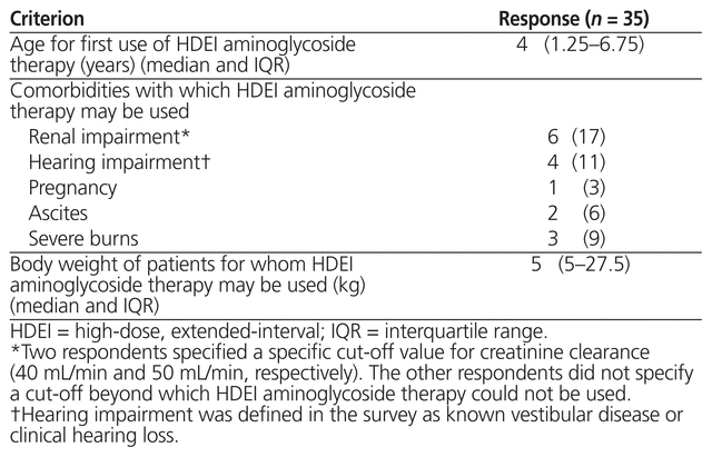 Table 2 Criteria for Use of High-Dose, Extended-Interval Aminoglycoside Therapy across Canadian Institutions