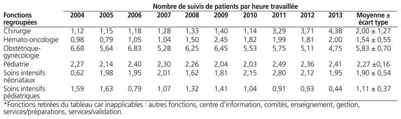 Tableau 3 Profil du nombre de suivis de patients par heure travaillée selon les fonctions types*