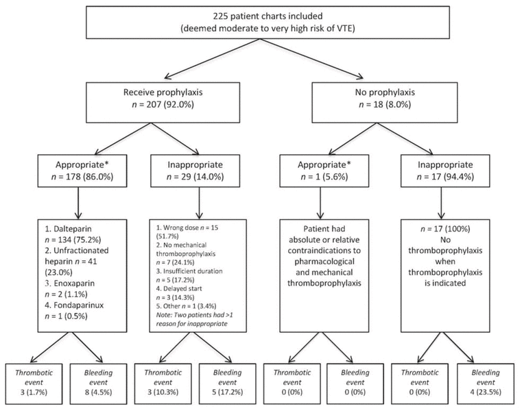 Figure 3 Use of venous thromboembolism prophylaxis. *Overall rate of appropriate prophylaxis was 79.6% (179/225). |