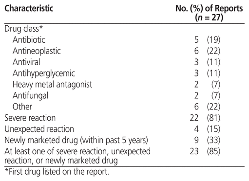 Table 1 Characteristics of Adverse Drug Reaction Reports Submitted at the Intervention Site