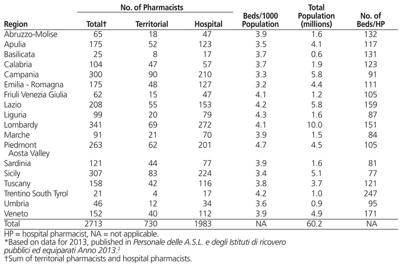Table 1 Number of Pharmacists in Italy and Number of Beds Served by Each Hospital Pharmacist*