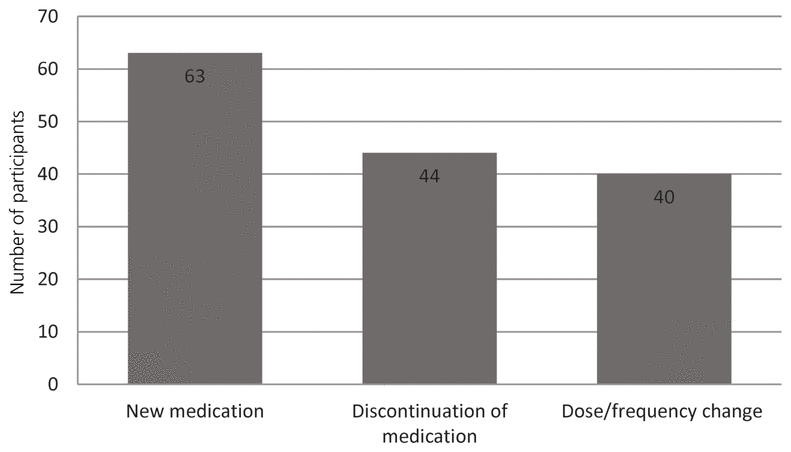 Figure 1 Medication changes on discharge among 72 participants. Some patients had more than one type of medication change. |