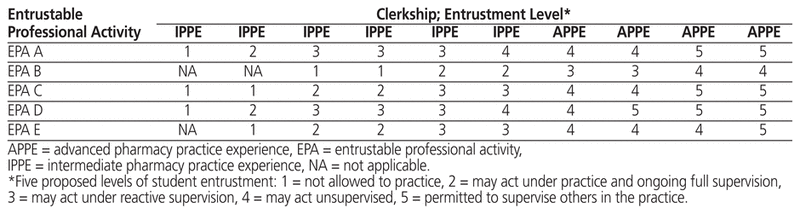 Table 1 Hypothetical Expected Entrustment Levels for 5 Program EPAs as Student Milestones at Various Points across an Experiential Training Curriculum of 10 Consecutive Clerkships18