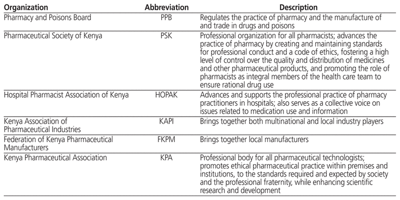 Table 2 Professional Pharmacy Organizations in Kenya
