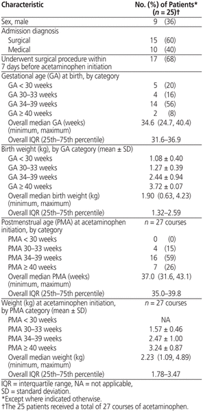 Table 1 Baseline Characteristics of Neonates Receiving Rectal Administration of Acetaminophen