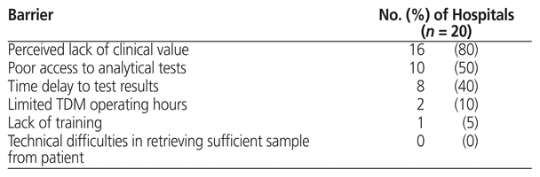 Table 3 Reported Barriers to Therapeutic Drug Monitoring (TDM)