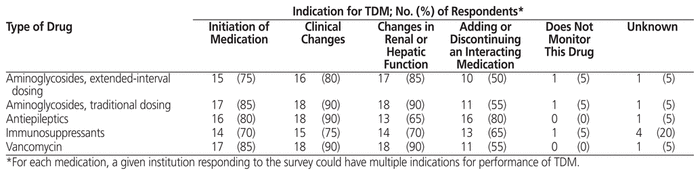 Table 4 Indications for Therapeutic Drug Monitoring (TDM) (n = 20)