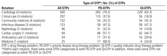 Table 2 Numbers of Drug Therapy Problems, by Rotation Type