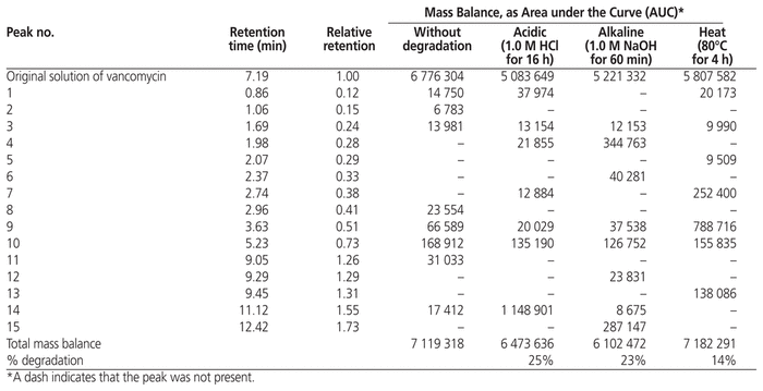Table 1 Mass Balance of Vancomycin Solutions after Various Methods of Forced Degradation