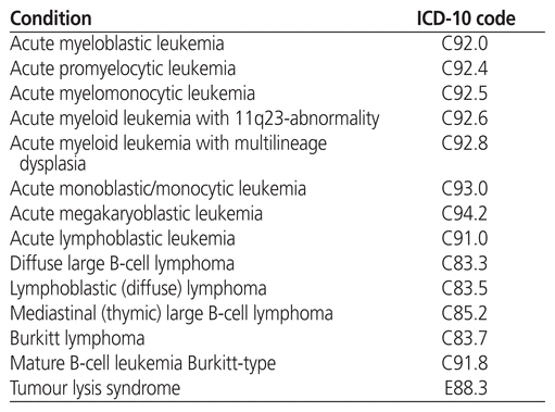 Table 2 Hematologic Malignancies of Interest and Associated Characteristics Used as Inclusion Criteria3,5
