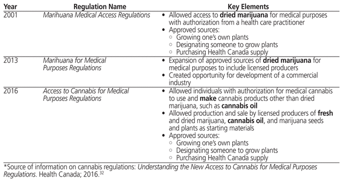 Table 1 Evolution of Canadian Medical Cannabis Regulations*