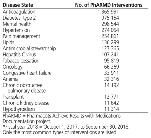 Table 1 PhARMD Disease State Interventions, Fiscal Year 2018*
