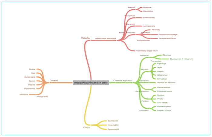 FIGURE 1 Carte heuristique des termes applicables à l’intelligence artificielle en santé. |