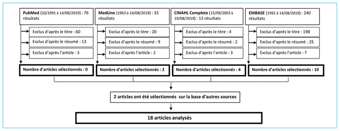 Nous avons consulté quatre bases de données, soit PubMed, Medline, Embase et CINAHL.
