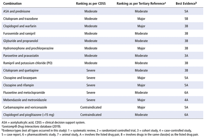 7 Tilson H, Hines LE, McEvoy G, Weinstein DM, Hansten PD, Matuszewski K, et al. Recommendations for selecting drug-drug interactions for clinical decision support. Am J Health Syst Pharm. 2016;73(8):576–85.
