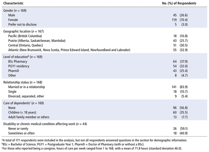 TABLE 1 Demographic Characteristics of Canadian Hospital Pharmacists Responding to the Surveya