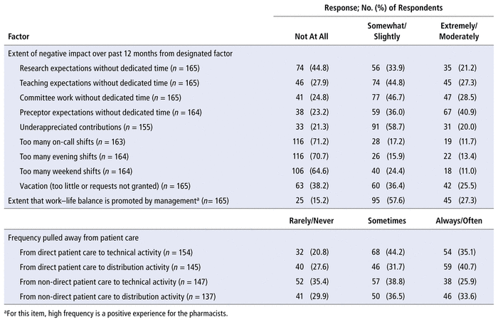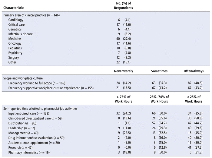 TABLE 3 Summary of Workplace Experiences of Canadian Hospital Pharmacists