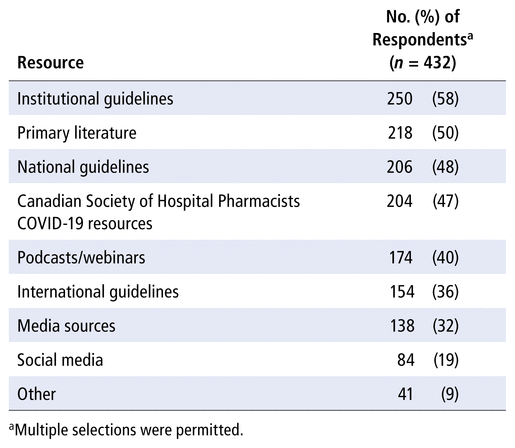 TABLE 3 Resources Accessed to Aid in the Management of Patients with COVID-19
