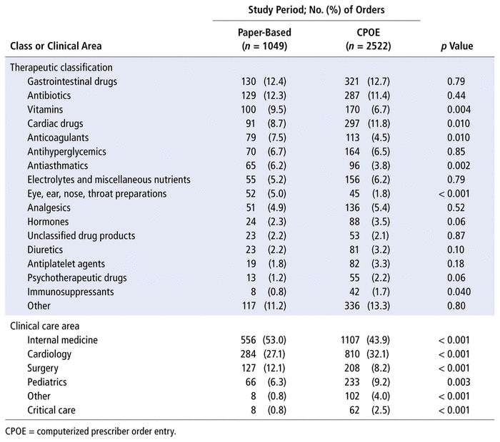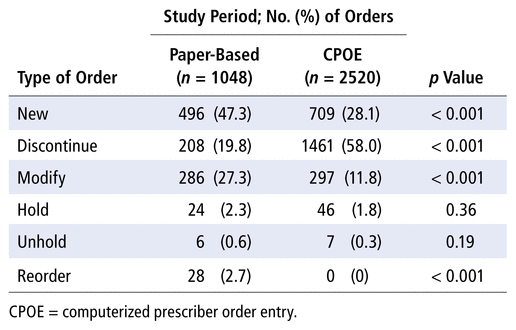 TABLE 2 Proportional Differences in Type of Order in Paper-Based and CPOE Study Periods