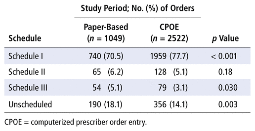 TABLE 1 Proportional Differences in Orders by Drug Schedule in Paper-Based and CPOE Study Periods