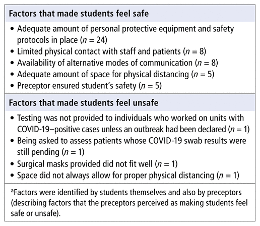 BOX 1 Factors that Made Students Feel Safe or Unsafe during Rotationsa