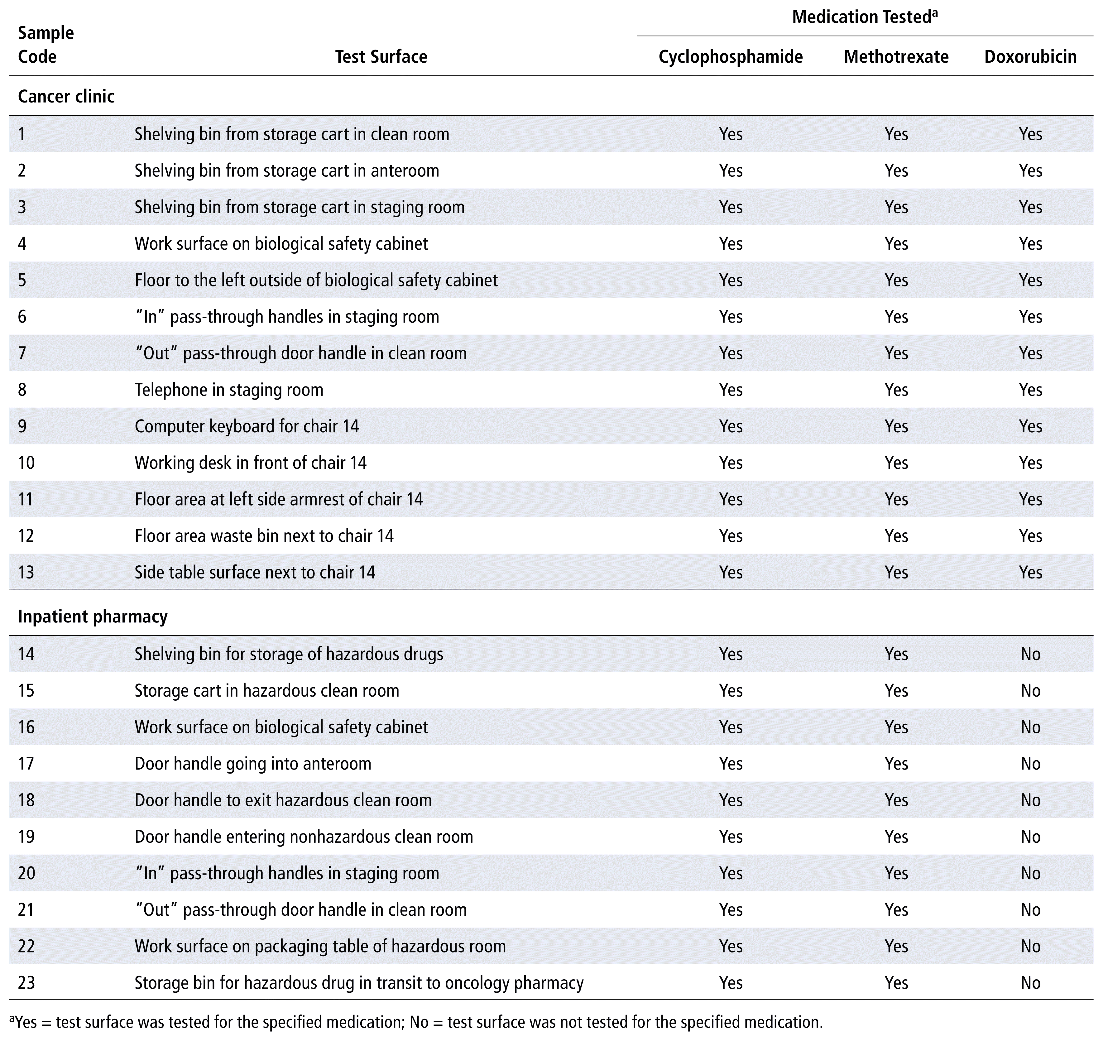TABLE 1 Locations of Sampling Test Areas for Specified Hazardous Medications