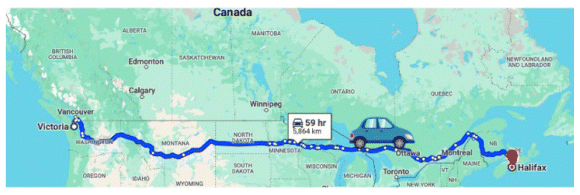 Our study showed that the wasted inhaler doses generated 1 226 342 g CO2 eq, equivalent to driving 5951 km in a typical Canadian gas-powered car,9 a distance greater than the drive from Victoria, British Columbia, to Halifax, Nova Scotia (Figure 1). This waste corresponded to a cost of $6172.82 over the 3 months of the study for the 3 adult wards.