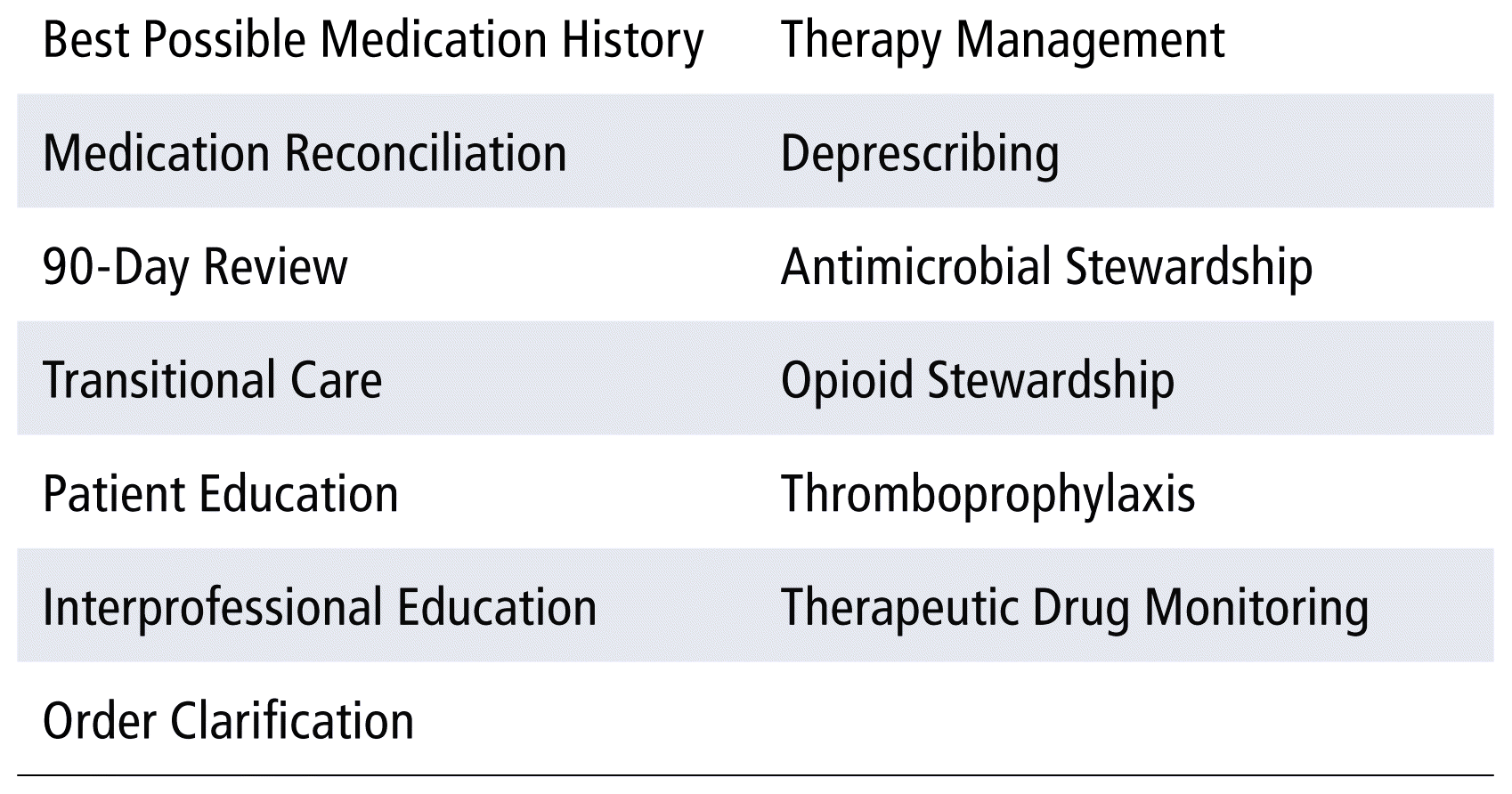 A pharmacy-led interdisciplinary working group was established to define and support the implementation of standardized medication reconciliation process across 10 ambulatory settings where medication management was identified as a major component of care.