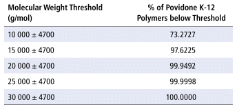 TABLE 1 Proportion of Povidone K-12 Polymers with Molecular Weight below Thresholds