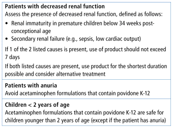 Therefore, we developed the recommendations presented in Box 1 to ensure the safety of IV acetaminophen containing povidone K-12 in term and preterm neonates and infants.